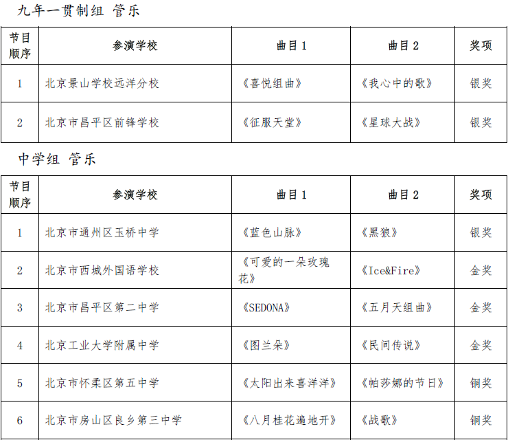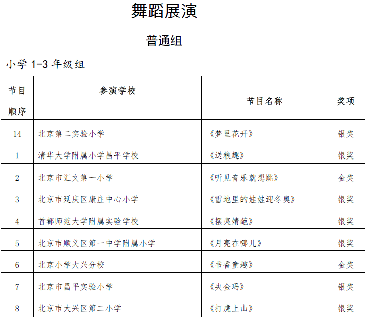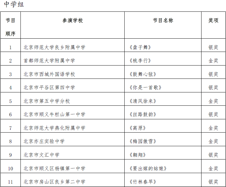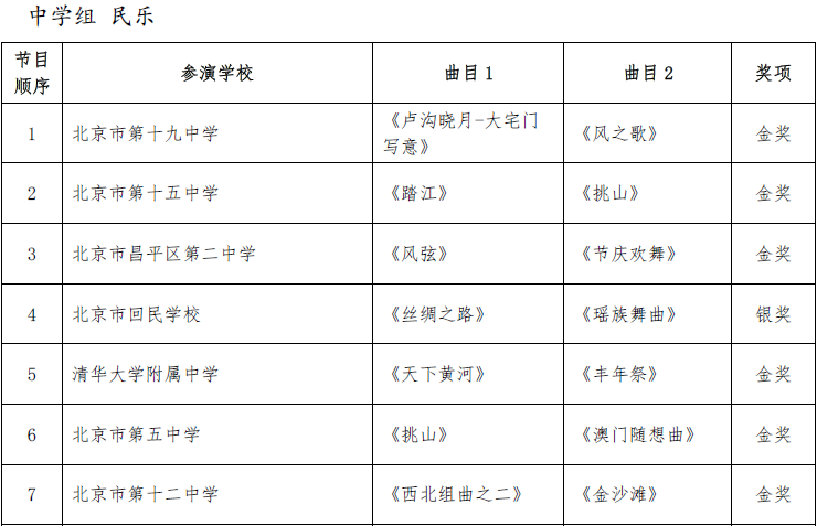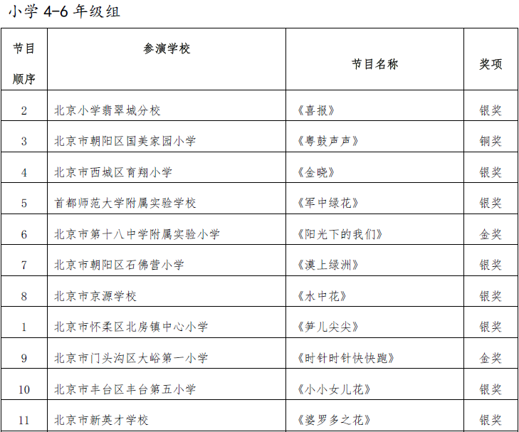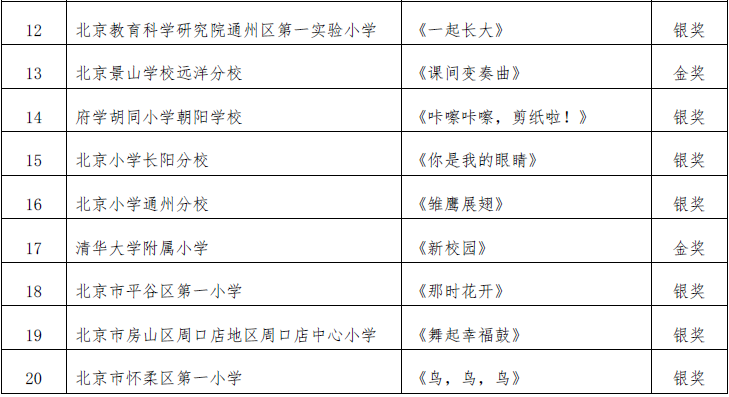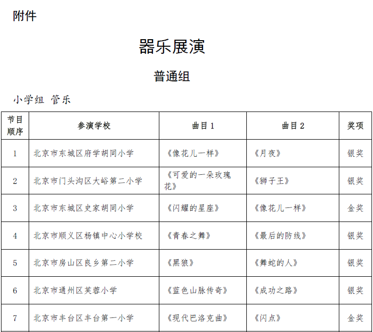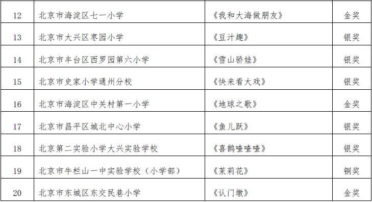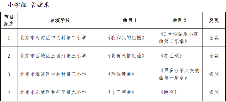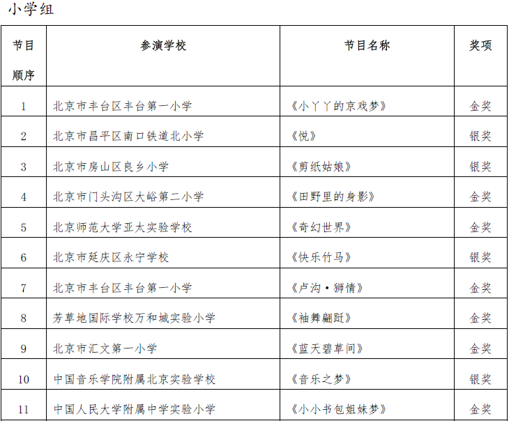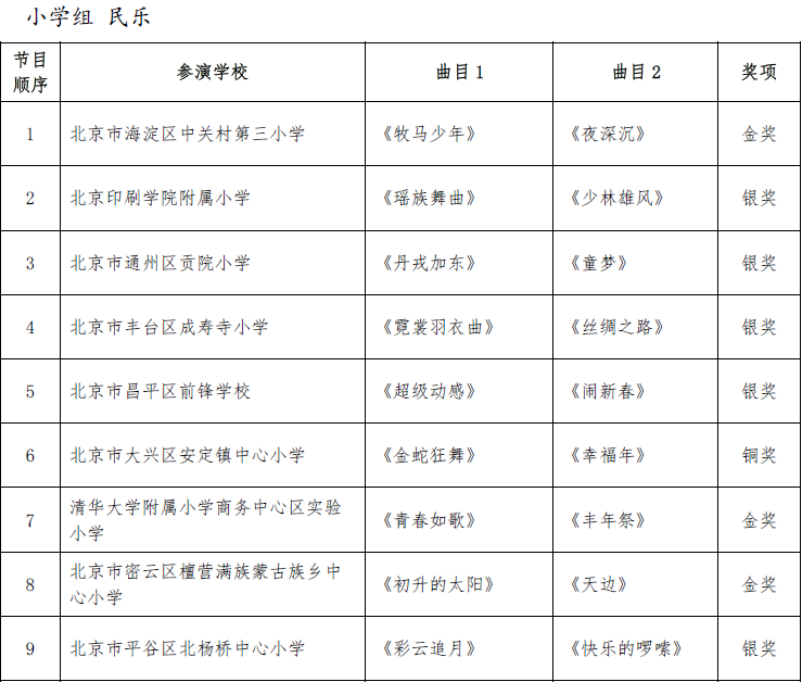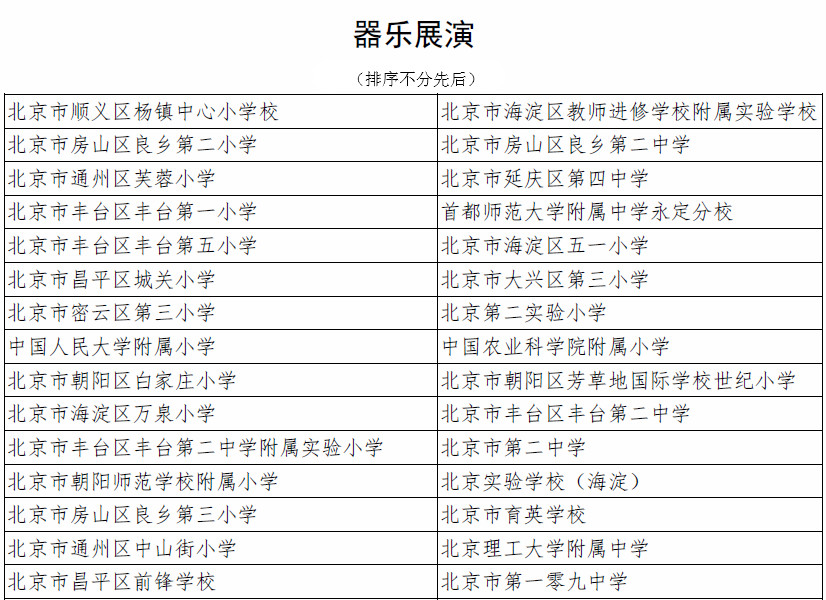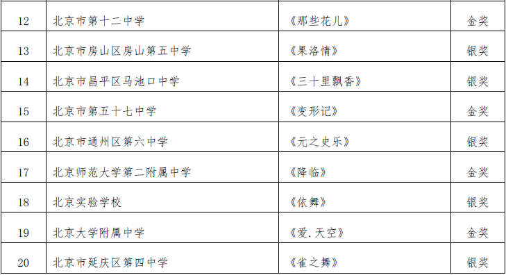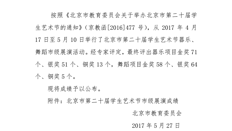 北京市第二十届学生艺术节器乐 舞蹈市级展演成绩公告