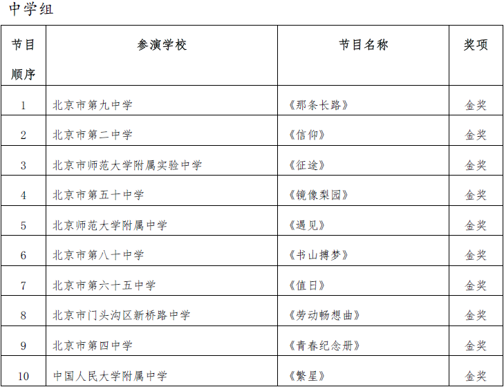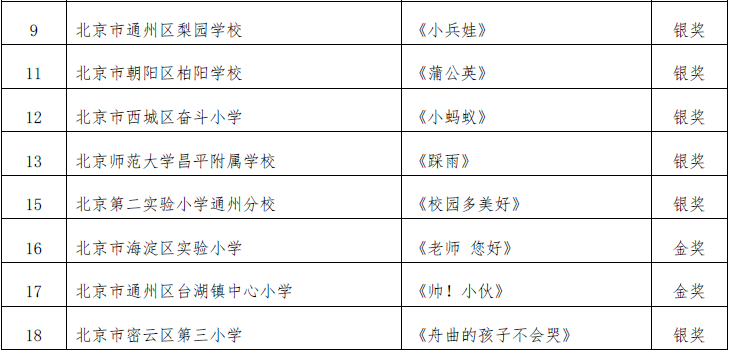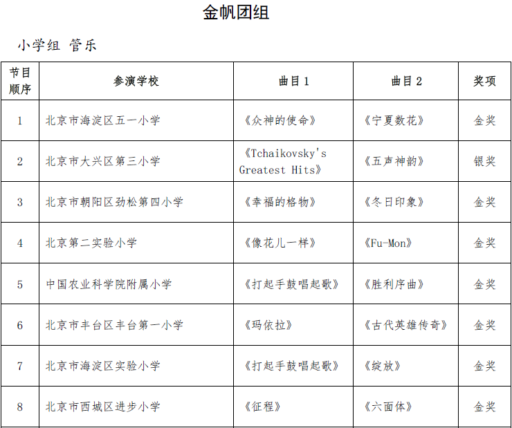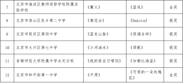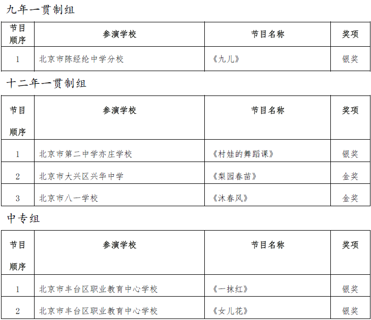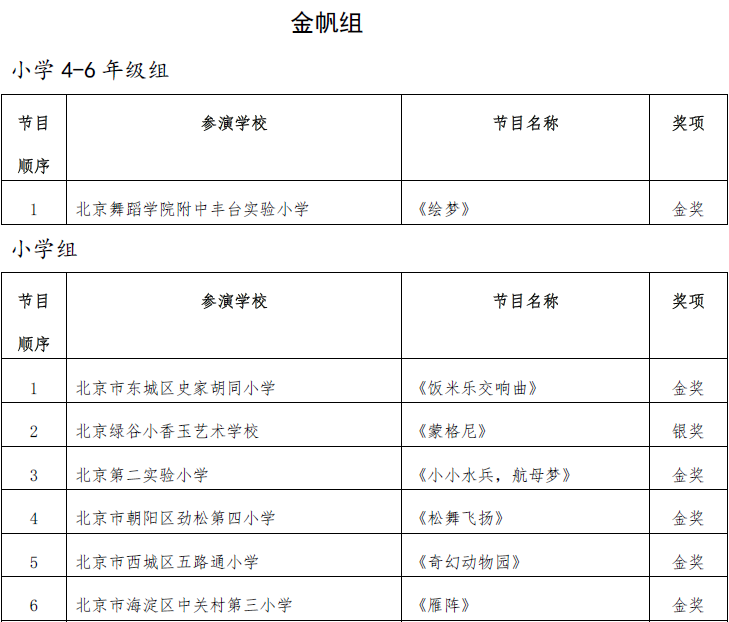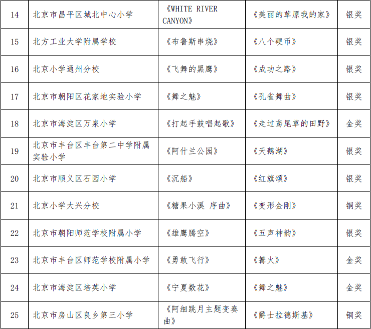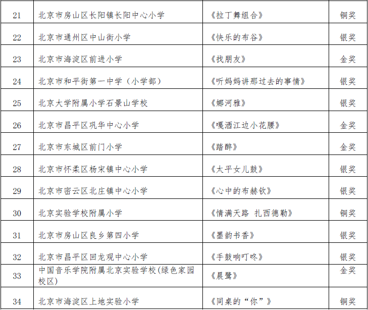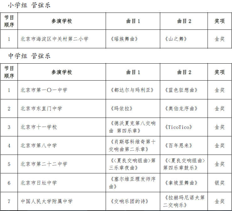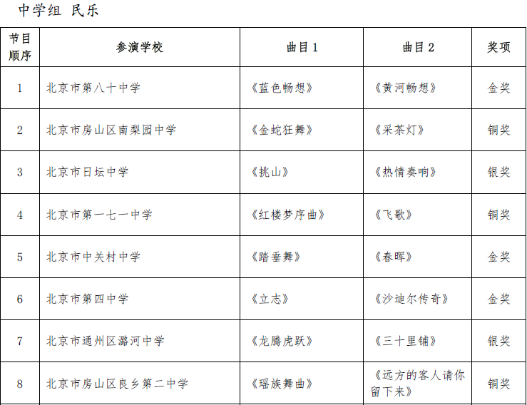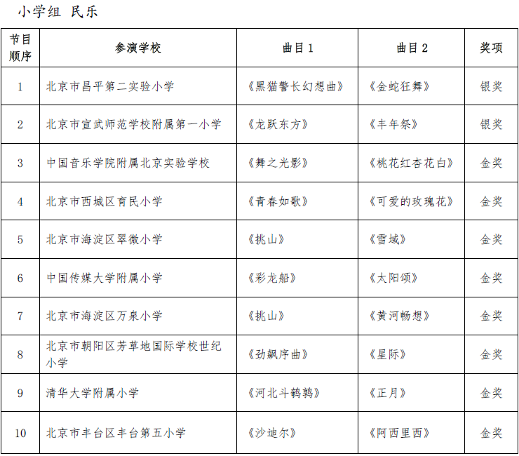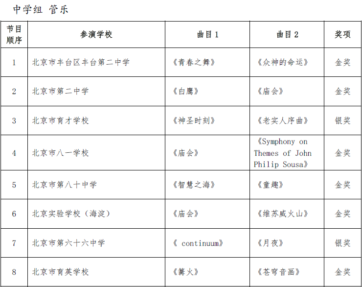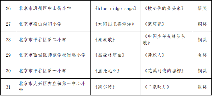 北京市第二十届学生艺术节器乐 舞蹈市级展演成绩公告