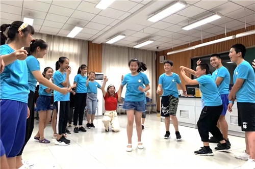 “Splash”游戏、戏剧版“抢椅子”……丰富生动的戏剧课堂成为营员们这两天争先恐后奔赴的目的地。在几位北外国际IDEC国际戏剧教育大会的戏剧教师们的专业引导下,营员们进入到奇妙的戏剧世界中,明白了注意力的重要性,感受到想象力的强大力量,懂得信念和准确表达的意义。