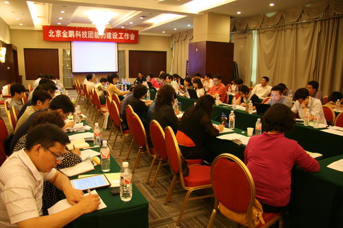 2012年5月29日、30日,北京市教委在九华山庄召开了金鹏团能力建设工作会。44所北京金鹏科技团成员单位及有关区县教委体美科、校外办科技负责人出席了会议。