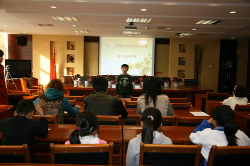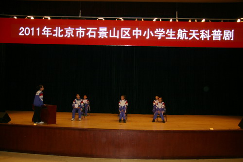 2011年11月,在石景山区青少年活动中心举办了一年一度的“北京市石景山区航天知识竞赛”区级决赛。这项活动是以航天知识为活动依托,设计了航天知识、水火箭、航天科幻画、航天论文及航天科普剧五项活动,共有10余所学校近300人参加。