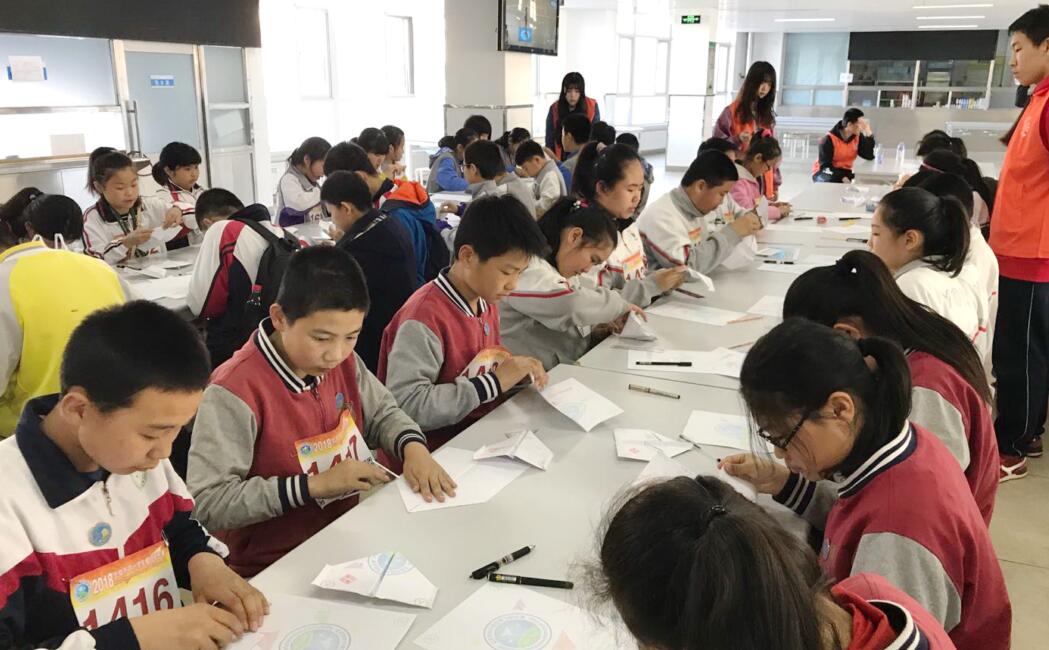 第五届北京市中小学生纸飞机比赛于2018年4月14、15日在北京市第十九中学举行。来自全市16个区180所中小学共1182名中小学生参加了纸折飞机直线距离、留空计时、悬浮和风火轮接力、五环靶标、纸飞机投掷弹射器设计制作五个项目的角逐。