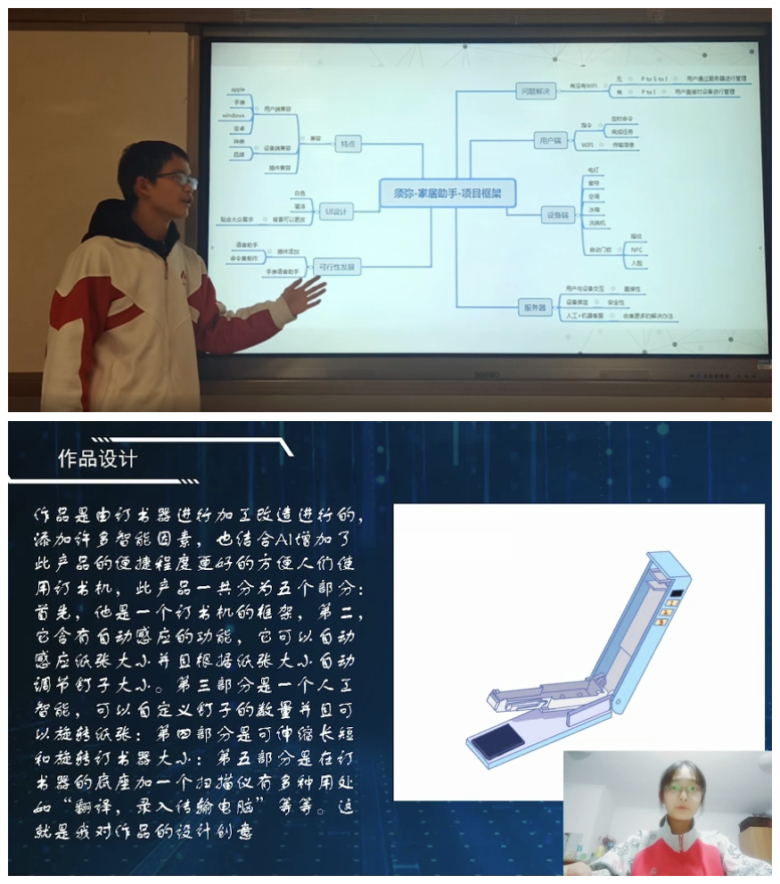 未来创新秀场采用团体参赛模式,结合非物质文化遗产项目,引导学生发挥创想,将工程创新原型作品以视频形式展现。项目引导学生积极互动和开放交流,培养了学生的团结协作、动手能力和创造力。