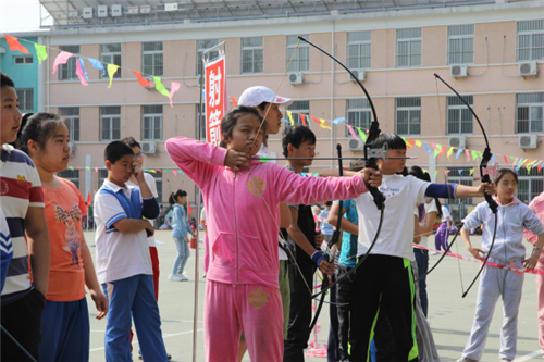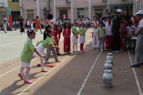 为传承民族体育、办好民族传统体育比赛,组委会为参赛校提供了,铁环、搓板路、小桥、陀螺、弓箭、投壶等器材,其中投壶项目安全有趣收到广大低年级学生喜爱,射箭运动一起特有的运动魅力吸引了众多中高年级学生的追捧,有望15年成为独立的比赛项目。