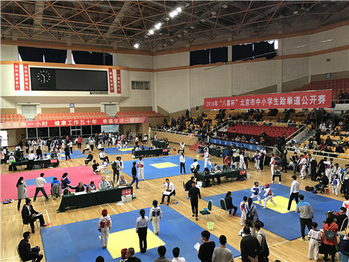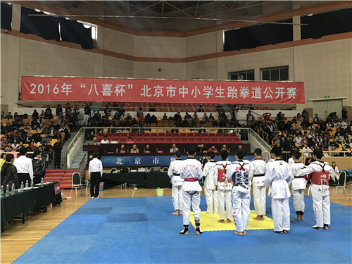 2016年北京市“八喜杯”中小学生跆拳道公开赛于2016年10月22-23日在北京地坛体育馆内举行。本次比赛由北京市中小学体育运动协会和北京市跆拳道协会主办,北京日月天地体育文化有限公司承办。共有来自189所中小学和俱乐部的1600余名学生参赛。