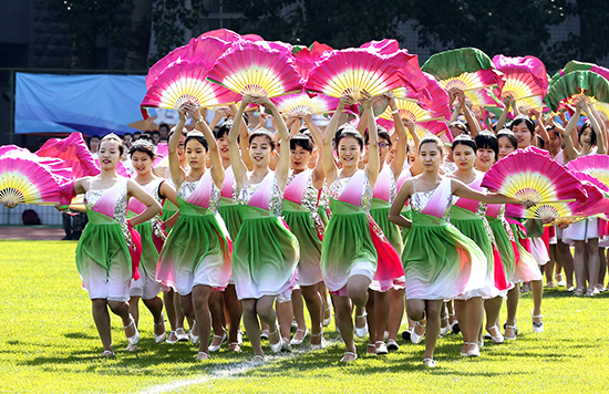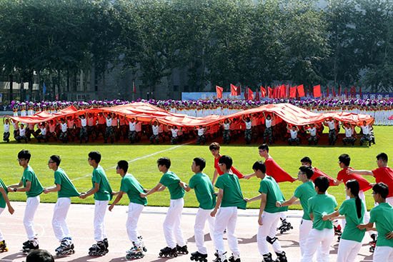 运动会开幕式上,北京理工大学1300位同学带来大型团体操表演。表演分为《文脉传承 军工魂魄》、《活力青春 精彩校园》、《传统文化 花样绽放》、《心中有国 复兴民族》4个篇章,开幕式表演集中体现了“更快、更高、更强”的体育精神,呈现出北京理工大学作为新中国第一所国防院校的“延安根、军工魂”的深厚文化底蕴,充分展现了当代大学生传承中华优秀传统文化、践行社会主义核心价值观、自强不息奋发报国的精神面貌。