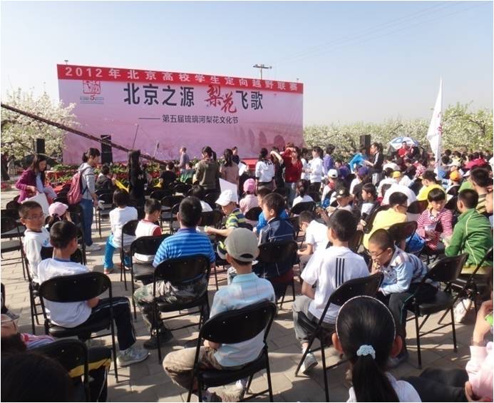 4月14日300名学生参加了在房山万亩梨花园举办的定向运动联赛。