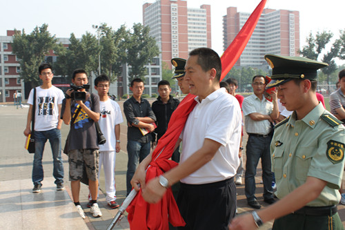 6月17日下午2:30—6:00在中国农业大学东校区开展第三届北京高校国旗仪仗队检阅式赛前培训工作,有60多名高校国旗仪仗队负责人参加了培训,赵新风教官针对升旗程序及动作做了详细的讲解和示范。