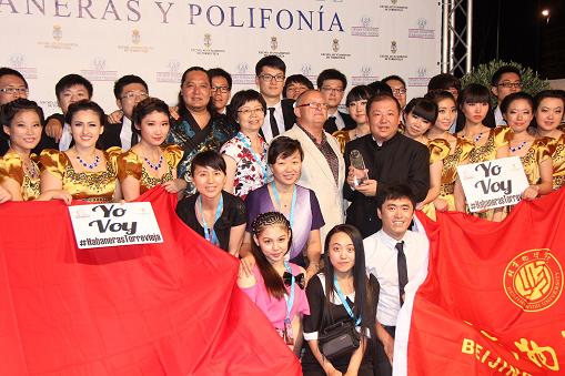 比赛中,北京物资学院学生合唱团的表演不仅继承了哈巴涅拉音乐的传统风格,更融入了本民族的特色,以东方人特有的细腻精致和音色的通透唯美,打动了评委和观众。在曲目《A tu lado》《el ausent》《蒙古靴》等作品的演绎中,北京物资学院学生合唱团不仅得到了评委会及观众的赞誉,必唱曲目《El Ausente》的曲作者--作曲家Jorge López也专程找到北京物资学院学生合唱团并感谢合唱团将他的作品演绎的如此甜美。