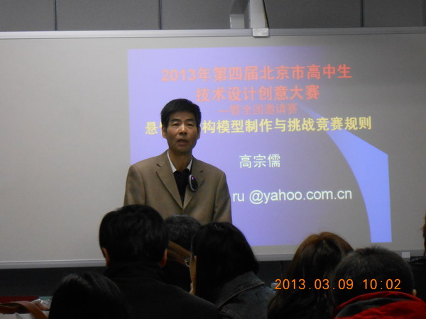 2013年3月9日,第四届北京市高中生技术设计创意大赛暨全国邀请赛市级教师培训在北京四中高中部举行,来自16个区县86所学校的210多名教师分别参加了集中培训和“悬臂梁”、“服装再造”、“三维成型”各分项目培训。