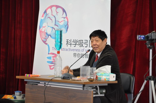 活动中,原海淀区青少年科技馆馆长、北京市科普专家、特级教师李其震老师给在场的人员展示了“听话的水瓶”、“水瓶压力器”、“比萨斜塔”等以水为主的科学实验;东城科技马老师、门头沟李正文老师分别给大家展示了空气的实验等。几位老师的语言幽默风趣,将深奥的科学道理通过有趣的实验展示给大家,使在场的人员愉快轻松的接受了科学道理。现场互动环节更是吸引了众多学生和家长亲身体验,使得现场的气氛尤为活跃。
