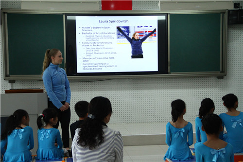 通过去年一年与劳拉的接触,芬兰队列滑学院的专家们一起针对北京青少年实际情况制定了适合的训练方法和计划。本次来到北京,劳拉将先后走进6所学校开展为期5天的培训,尤其是作为金帆舞蹈团承办学校的劲松四小,刚刚成立了学校的第一支队列滑队伍。劳拉为孩子们带来了一堂别开生面的理论课和陆地训练课。劲松四小拥有全国最高水平的舞蹈社团,从有舞蹈基础的孩子中组建高水平队列滑队伍是一次非常有意义的尝试。