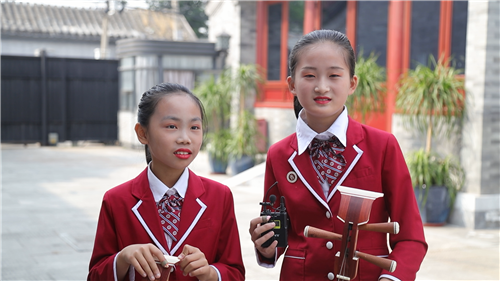 在北京市通州区贡院小学的《军训进行曲》中,于沐菲和刘亭玉两位同学分别带来的三弦独奏低吟跳动,扣人心弦。第一次独奏的她们免不了紧张局促,但在接受采访时,她们表示本次参加展演收获良多,也让她们再一次感受了音乐的乐趣和魅力。
