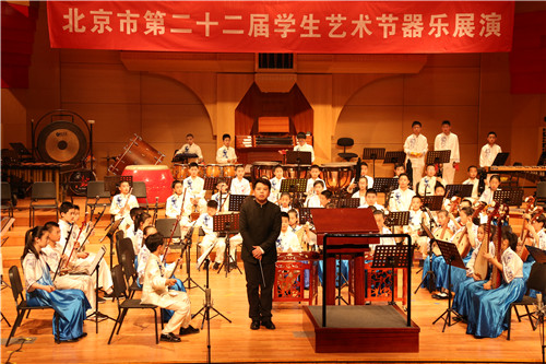 北京市石景山区银河小学作为石景山区唯一支民乐团前来参加市级展演,指挥老师李森非常兴奋、激动。他认为这样的舞台不仅可以让大家看到孩子们为民族音乐做的努力,还可以和很多学校学习、交流,给了他们很大动力,激励他们更加努力,不忘初心,为民族音乐尽一份力。