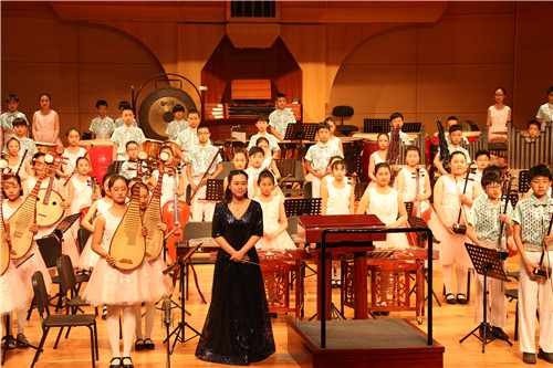 北京市房山区良乡小学指导老师孙柳说本次展演的曲目之一《国乐飞扬》是著名作曲家冯晓泉的作品,整首曲子突出表现了笛子的特色,之后加入的管乐声音,产生了一种共鸣。结尾处的打击乐中又穿插了部分solo,为整首曲目增加了很多色彩;《编花篮》是一首颇具河南豫剧风格的作品,孩子们通过现场展演来体会民族乐器的特色之美。