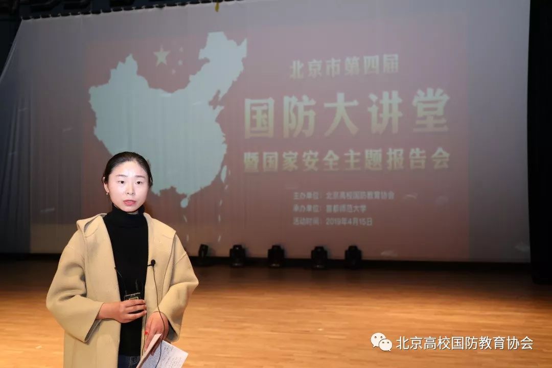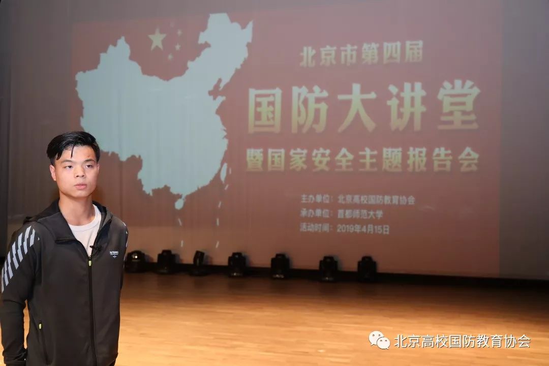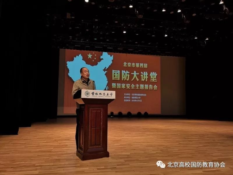 4月15日是全民国家安全教育日。由北京高校国防教育协会主办、首都师范大学承办的北京高校第四届国防大讲堂暨国家安全主题教育报告会在首都师范大学学生活动中心举行。中国人民大学、北京科技大学、北京林业大学、北京外国语大学、北京语言大学、中国地质大学、中国矿业大学、中国农业大学、中央民族大学、北京联合大学、首都师范大学11所高校师生700余人现场聆听了报告。报告会由北京高校国防教育协会秘书长、首都师范大学武装部副部长许虎主持。