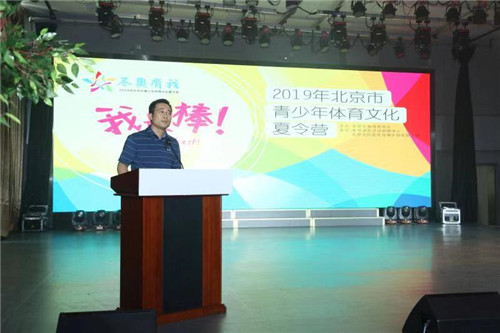 由北京市教育委员会、北京市体育局、北京冬奥组委新闻宣传部、北京奥运城市发展促进中心主办的2019年北京市青少年体育文化夏令营于7月14日上午闭营。各主办单位相关领导出席了闭营仪式。经过各区推荐,共有来自全市16个区及燕山地区的20所学校近170名热爱冰雪运动的学生代表参加了本次体育文化夏令营活动。