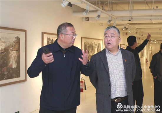 李广文(右)出席活动并参观展览
