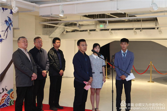 展览发布活动上,王长存校长致辞。他指出,顺义九中是顺义区教委所属的一所普通高中校,学校成立二十年来,办学质量不断提升,办学特色不断彰显,逐步走出了艺体特色教育发展办学之路,目前是顺义区唯一一所国家级艺术体育特色学校。学校大力实施美术特色教育,校内建有蝶砚书画院,是北京市学生金帆书画院,拥有雄厚的美术专业师资力量,美术生培养形成系统化、规范化、科学化、专业化发展。学校成立以来,已输送千余名学子升入清华大学美术学院、中国传媒大学、中央民族大学、北京工业大学、北京印刷学院、山东大学、兰州大学、云南大学等众多高校的美术、设计等艺术专业学习深造,学校美术教育、学生美术特长培养已经成为学校艺体特色教育的亮丽的名片。