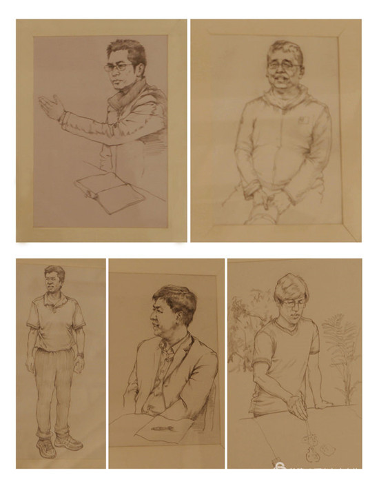 向几位领导赠送素描画像