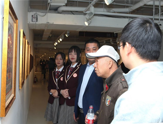 高三年级播音主持专业学生屈晓庆、刘硕主持了展览发布活动。活动中,高二年级的八名同学表演了舞蹈《扇舞丹青》,他们仅用了三天时间就认真排练完成,以舞蹈的方式向创作出优秀美术作品的师生致敬;美术生们向张军堂、高山、李广文、刘之海、魏宗安等领导赠送了根据他们的生活照进行的人物素描画像;出席活动的领导们和美术老师们进行了合影留念。