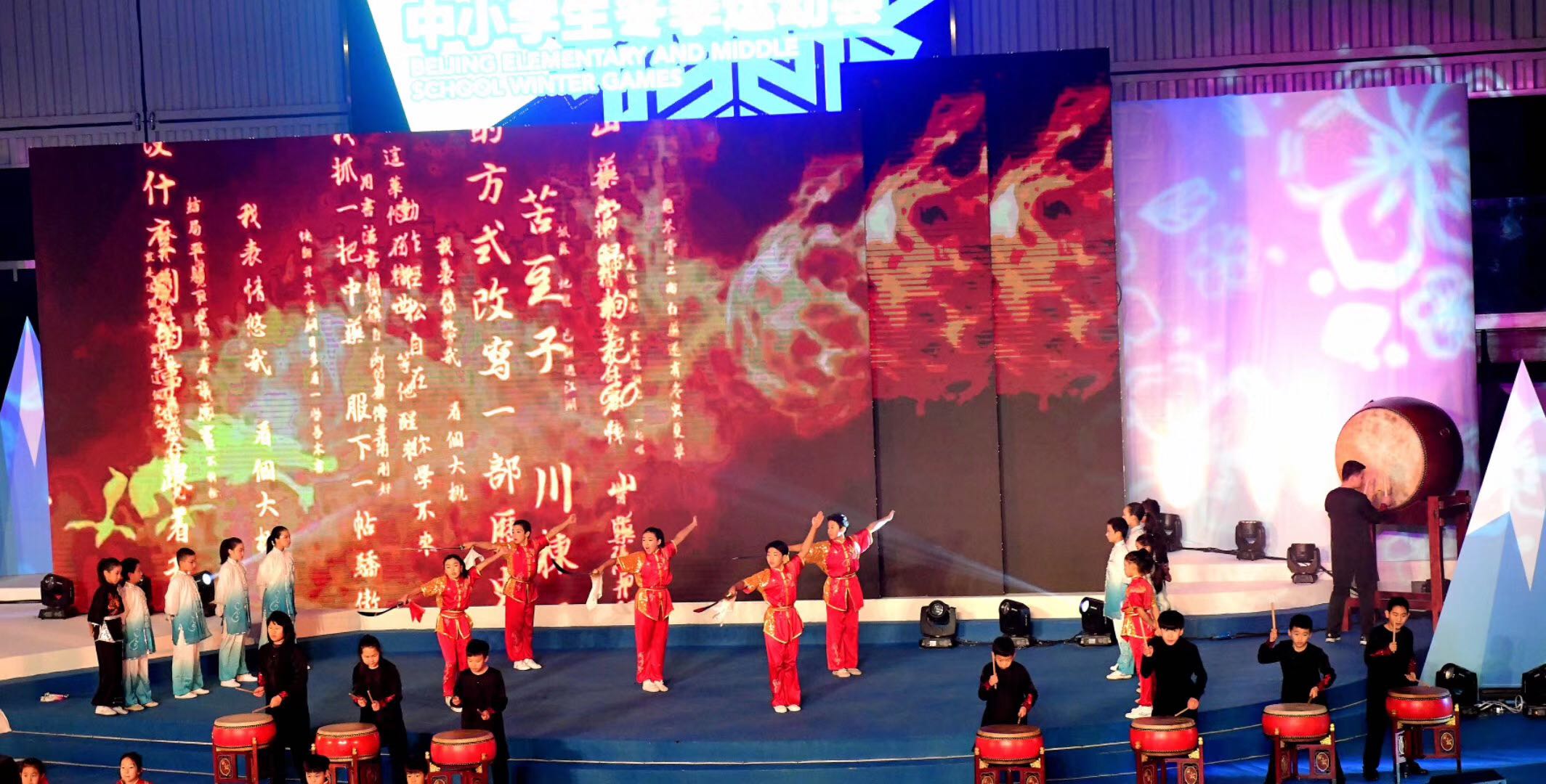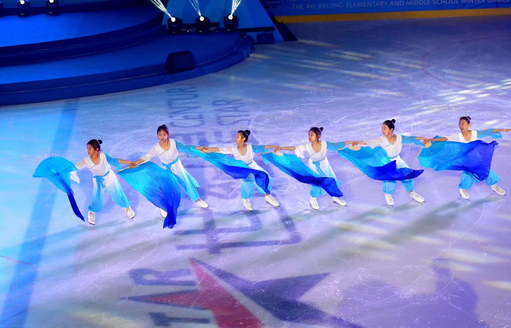 随后进行的青少年文体展示活动紧紧围绕“我们的祖国是花园”这一主题展开。来自东城、朝阳、海淀、丰台、昌平、大兴近430名学生,通过武动乾坤、智慧之花、律动之花和祖国的花朵四个篇章,将冰球、花样滑冰、速度滑冰、冰壶、滑雪等冬季运动项目与武术、健美操、舞蹈等表现形式和科学技术手段融为一体,带来了一场冰雪运动的视觉盛宴,展现了我市中小学生的风采,促进学生全面发展,有效推动冰雪运动的普及。在演出尾声所有演员与现场观众齐唱歌唱祖国,为祖国送上祝福。