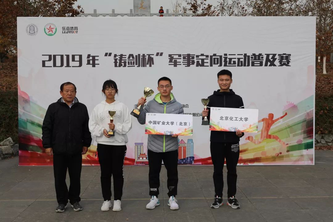 军事定向赛前三名分别由中国矿业大学(北京)、北京信息科技大学和北京大学获得。