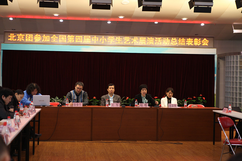 2013年3月29日北京团参加全国第四届中小学生艺术展演总结会,在北京市东城区少年宫隆重举行,活动由教育部主办,厦门市政府承办。此次展演活动以“阳光下成长”为主题,来自全国31个省、市、自治区6000余名师生代表参加了展演活动。188个丰富多彩、形式多样的器乐、合唱、舞蹈、校园剧、朗诵节目参加了艺术表演类的现场展演。活动期间,还举办了艺术作品展览、艺术教育论文报告会、校长美育论坛、阳光踩街等活动。北京代表团参加了全部展演活动,充分展现了我市中小学生素质教育教学成果和广大青少年学生文明、进取、协作、创新的精神面貌,达到了预期的目标。