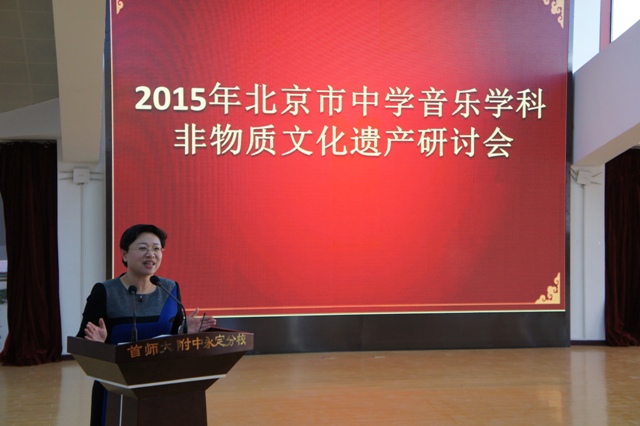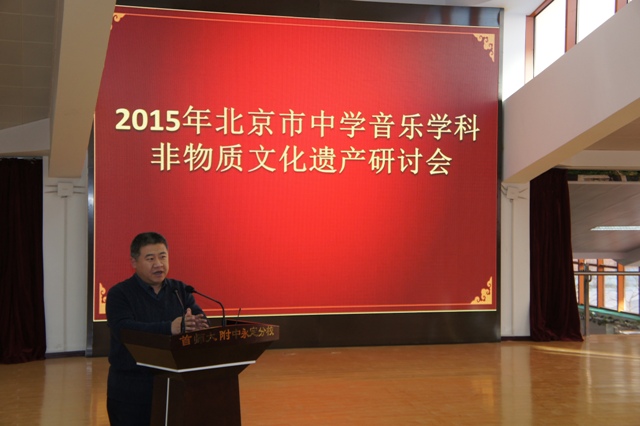 2015年1月6日,北京教科院基教研中心中小学音乐教研室在门头沟区首师大附中永定分校报告厅召开了"北京市中学音乐学科非物质文化遗产研讨会"。北京教科院基教研中心中小学音乐教研室梁洪来主任;门头沟区教师进修学校裴艳萍校长;门头沟区教师进修学校李春旺主任;门头沟区首师大附中永定分校齐景林校长出席会议。研讨活动由门头沟区教师进修学校中学音乐研修员王静老师主持。来自北京市各区县的中小学音乐教研员及部分骨干教师共120人参加了本次活动。