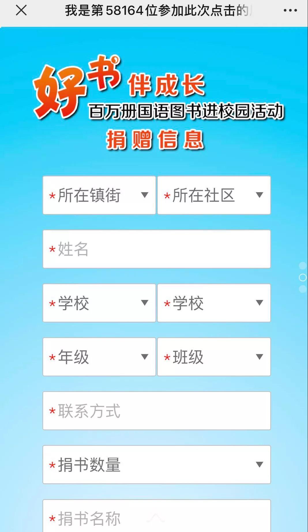团区委制作H5捐书小程序,捐赠现场扫码登记,捐赠信息一键上传。