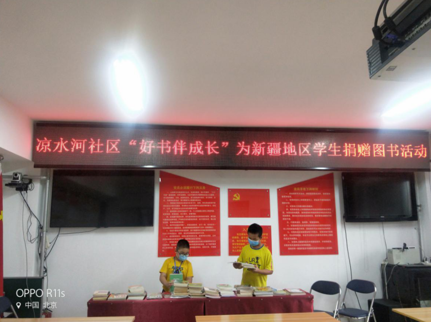 更有一些学生主动承担起志愿者的工作,在社区工作人员的带领下,细心地将捐赠图书分类、汇总。一本一本严格把关,只为了让新疆的同学们能早早地收到这份来自北京的精神文化大礼。