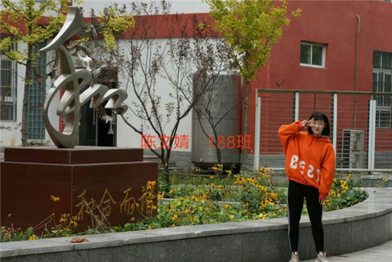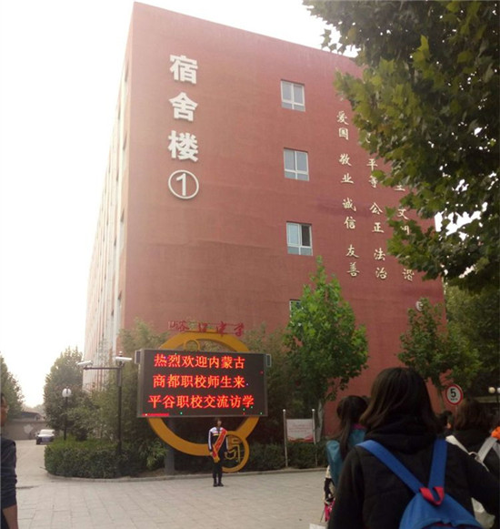 10月14号,我们用了将近八个小时的时间,终于来到了北京市的峪口中学(平谷职业学校)。怀着好奇而又激动的心情,赶紧下车。只见这里的老师同学早已等后我们了,他们在校门口的两边夹道欢迎,我们都有点不好意思了。在一位老师的引导下,我们边走边看,这所学校不是很大,但是到处都是参天大树,花池里的花还在开放着,衬着深绿色的小草,好美啊!我们吃过晚饭就去上晚自习了,教室里很宽敞,老师给我们播放了平谷职业学校师生在当地“桃花源大舞台”表演的节目,舞台上,我们看到平谷职业学校学生自己设计的服装,看到美术专业同学的美术绘画作品,还看到烹饪专业同学的拉面表演,真是棒极了!同学们多才多艺的展示令我们这些来自商都职中的学生惊叹不已。今天早上我们去教室上了三节课,感觉这里的老师说的普通话真好!课堂上我们和老师一起学习一起交流,感觉非常轻松。今天下午我们要出外面,伴着蒙蒙细雨,学校用校车拉着我们去超市买了生活用品,回来的路上我们悄悄地说,这里的老师替我们想的真周到啊!紧接着,平谷职业学校的王主任又陪我们去参观了全国知名的小提琴制造厂,在这里,我们看到的精品小提琴琳琅满目,并且亲眼看到了全国最有名气的小提琴制造师傅,了解到好多提琴文化,虽然只来了两天时间,但是我们的收获和感受太多了,真的非常感谢国家政府给我们这样的好政策,让我们有机会来到这所美丽的学校,开阔眼界,增长见识。 我们来这里只安排了一个星期的时间,我衷心地希望这几天我们同学老师珍惜这份师生情,祝峪口老师身体健康,工作顺利,同学们学习进步,让我们有缘再见!平谷职业学校,我爱你!——贾梦如