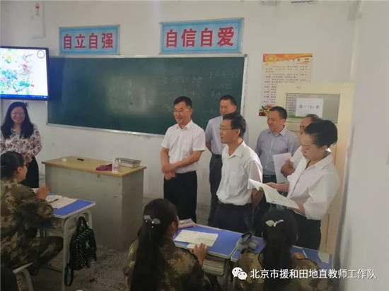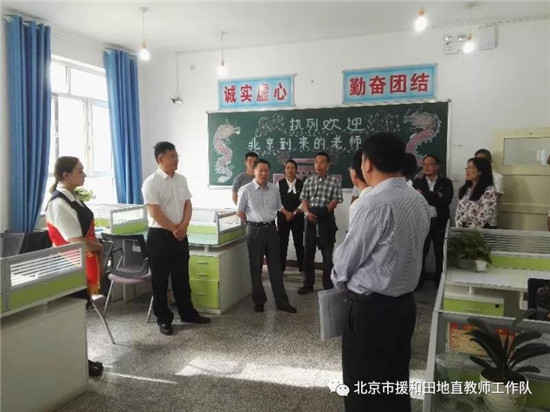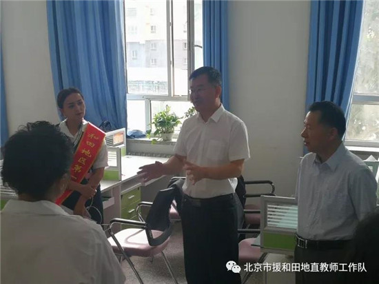9月6日上午,北京市援疆和田指挥部副指挥王爱军、程永涛在指挥部组织人事部、智力支援部相关负责同志陪同下,到和田地区一中看望慰问在这里进行教育教学工作的38名援疆教师。