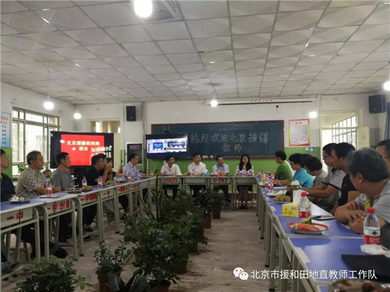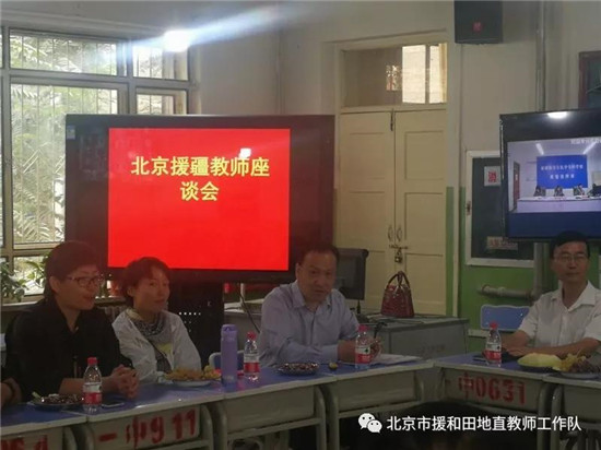随后,在地区一中会议室,举行了北京援疆教师座谈会。会上,地直教师工作队领队王若洪介绍了地直教师工作队的基本情况、人员岗位分布和临时党委的组织构成情况。李昕代表受援学校,感谢北京市对地区一中教育事业的真情投入,对北京援疆教师一周以来的工作和实际效果给予高度评价。