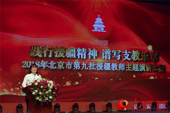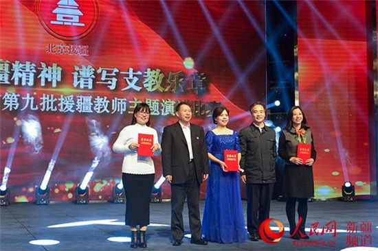 北京援疆老师张凤荣(左一)获得演讲比赛二等奖