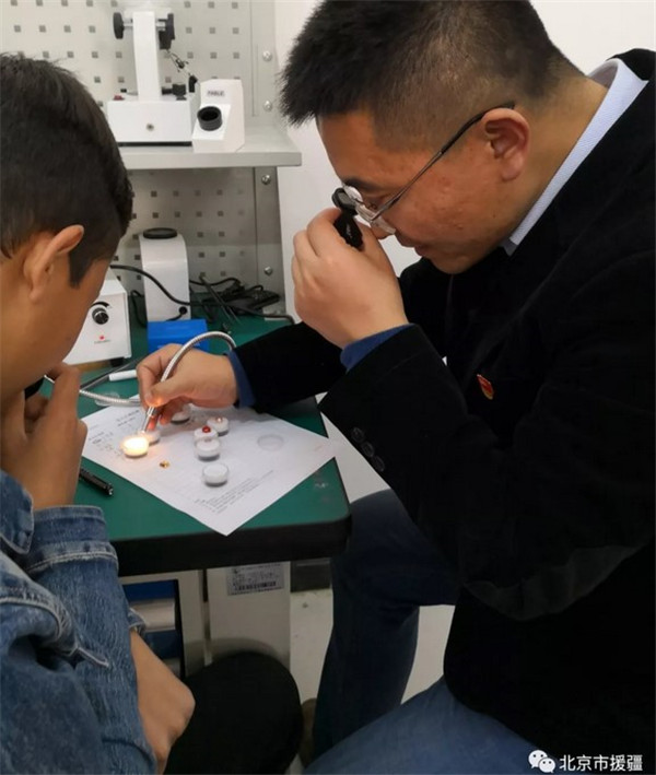 在教学中,武改朝对自己要求很严格,课前要做好“三备”,即:备学生、备资源、备环境。制定好课程内容后,精心做好教材教具、学材等准备工作,比如:准备放大镜、二色镜、滤色镜、各类宝石标本、宝石鉴定表、相关微课等等。为提高学生直观认知,他还专门制作了300张宝石和首饰设计卡片,自筹60粒20余种常见宝玉石标本,推进珠宝鉴定实训室,并且积极配合学校相关部门与深圳首检中心一起筹建珠宝鉴定实验室,切实提升学生珠宝鉴定综合能力,为和田地区和田玉的鉴定把脉助力。除了本职之外,他还身兼着安保委员和生活委员等职,负责接待集团和派出学校领导来访交流推进合作,精心指导当地两位年轻教师参加技能大赛等。拥有15年党龄的武改朝把积极作为、率先垂范当成自己应有的作为。
