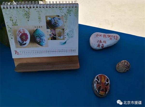 支教以来,他和学生一起创设和田石头画工作室,遴选优秀参考样本,结合和田当地特色,开发石头画产品,创作了大院文化、和田夜市、竹林虎啸、快乐童年、钟杨先生等许多正能量作品,切实提高学生艺术修养。武改朝一步一步推进和田石头画创作,完成论文《〈和田石头画〉教学实践探索》,制作完成和田石头画台历和创意扑克等衍生产品,携带作品参加地区和学校的展览展示,获得好评,为和田石的进一步优化利用提供了参考方案,助推和田旅游经济发展,为职业人才发展寻找可能性途径。