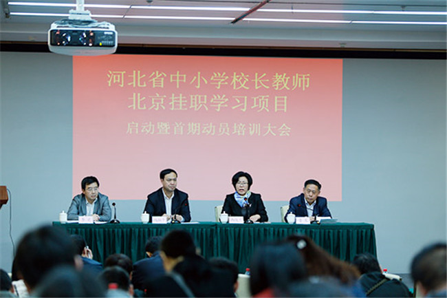 4月15日,河北省中小学校长教师北京挂职学习项目启动暨首期动员培训会在京举行,首期来自河北省的100名校长教师参加。北京市委教育工委副书记、市教委主任线联平,市委教育工委副书记韩俊兰,市教委副主任李奕,河北省教育厅副厅长董友等出席。