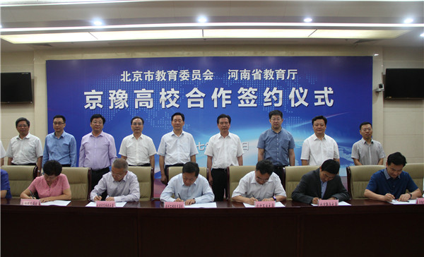 京豫合作再掀新篇。6月3日,北京市教育委员会和河南省教育厅联合在郑州举行京豫高校合作签约仪式。河南省委高校工委书记、省教育厅厅长朱清孟,北京市教委副主任黄侃出席签约仪式并讲话,河南省教育厅副厅长尹洪斌主持签约仪式。