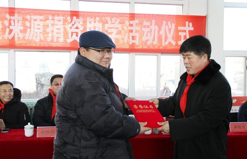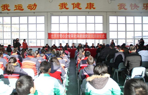 1月13日,在北京市教委、北京市工商联的协调推动下,北京市委党校2016级工商管理研究生班的部分企业家学员到保定市涞源县燕赵小学举办捐资助学仪式,资助学校45名建档立卡贫困学生。