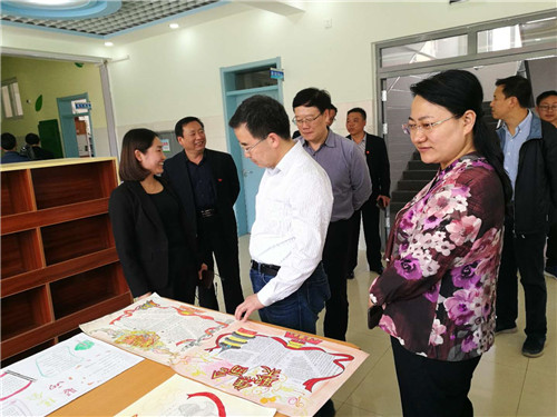 市委教育工委、市教委机关党委使用党员爱心捐款为涞源县燕赵小学资助了“爱心图书室”,并捐赠图书8000余册,李奕、杨伟坤同志共同为“爱心图书室揭牌”。会后,李奕同志一行分别参观考察了燕赵小学、涞源县第一小学、涞源县一中迁建新址。