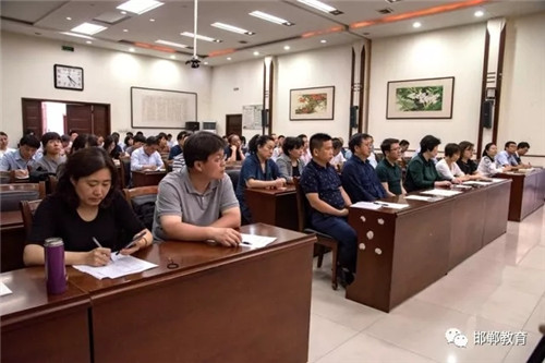 王力志处长在讲话中指出,近年来,邯郸市教育局高度重视京津冀教育协同发展工作,杨华云局长亲自带队多次赴北京市教委洽谈合作,先后选派5批150余名教育干部赴北京跟岗学习,极大促进了邯郸教育发展。2018邯郸教育帮扶援助活动,是全面贯彻党的十九大精神,深入贯彻落实京津冀协同发展战略,借助北京优质资源帮助提升邯郸教育水平,促进邯郸教育发展的一项重要举措。活动包含两项内容,一是北京市教委组织9大学科名师开展支教培训活动,二是开展对邯郸市高中教育精准扶贫捐赠活动。