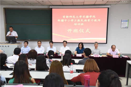 9月11日上午,新疆中小学少数民族骨干教师培训班开班仪式在首都师范大学良乡校区举行。首师大党委副书记徐志宏,市教委支援合作处副处长、新疆教育厅内派教师北京协调站站长刘海涛,京疆学院院长赵云云,党总支书记林广成,班主任果勇,新疆教育厅选派领队吾买尔•加帕尔等出席了仪式。仪式由京疆学院副院长沈晓非主持。