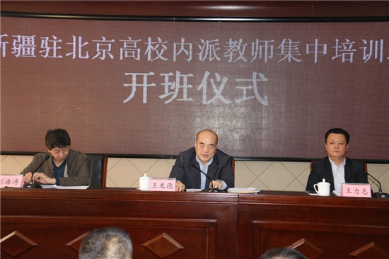 新疆驻京工作组党委书记王龙德同志在开班仪式中要求,全体内派教师思想上要高度重视,要珍惜本次学习机会,严格遵守学习纪律,学习和掌握国家相关的法律、法规、民族宗教政策和业务知识,增强责任感、使命感和紧迫感,做到认识不含糊、态度不暧昧、行动不动摇,旗帜鲜明地与“两面人”、“三股势力”和宗教极端思想做斗争,为在北京高校顺利开展工作打好打牢思想政治基础。