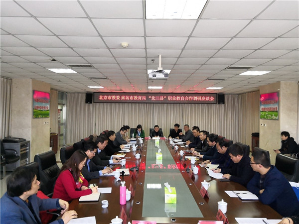 3月14日上午,北京市教委对口支援与区域合作处处长王力志、北京市教委职业教育与成人教育处调研员杨颉、北京财贸职业学院院长王成荣等一行在廊坊市教育局正处级督学许红伟以及廊坊北三县各职业院校负责人的陪同下,在北三县开展职业教育合作调研。
