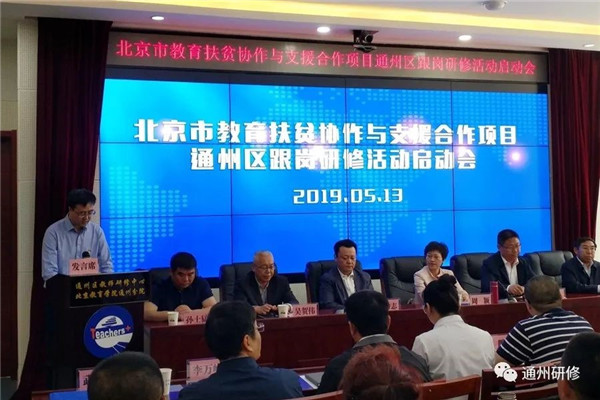 2019年5月13日上午,北京市教育扶贫协作与支援合作项目通州区跟岗研修活动启动会在通州区教师研修中心召开。按照北京市教委2019年教育扶贫协作与支援合作工作安排,内蒙古兴安盟科右中旗和河北省廊坊市北三县的51名干部、教师,到通州区22所学校开展跟岗研修活动。
