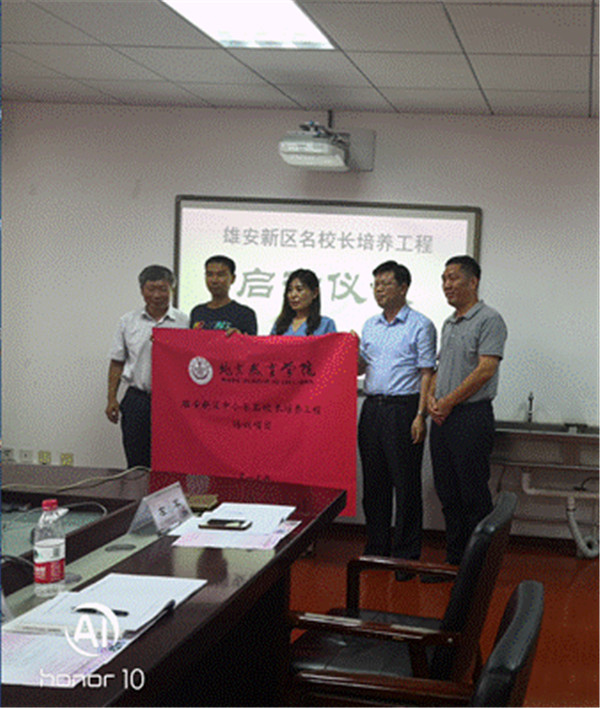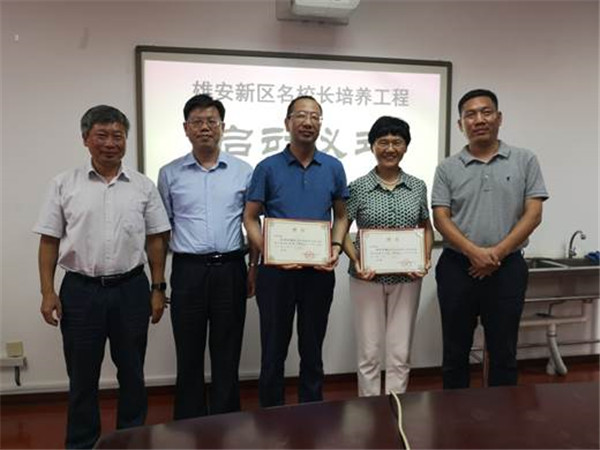雄安新区中小学名校长培养工程启动仪式于2019年7月22日在北京教育学院黄化门校区召开。该项目是2019年度北京市教育扶贫协作与支援合作项目重点任务之一,由北京教育学院牵头承办,旨在进一步深化北京教育援雄,不断提升雄安新区办学水平,来自雄安新区15名中小学校长参加本期培训。北京教育学院副院长钟祖荣、北京市教委扶贫协作与支援合作处调研员李鹏、雄安新区公共服务局副局长鲜万标等参加了启动仪式。