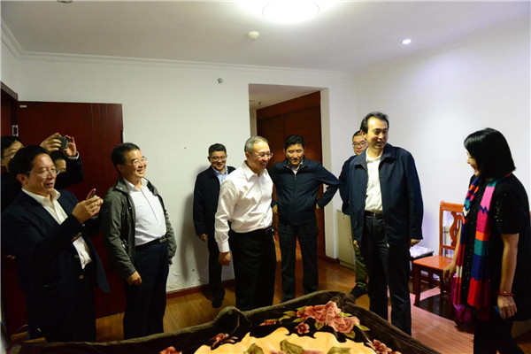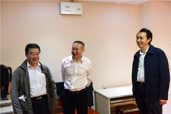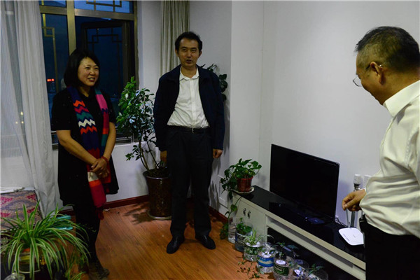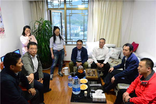 晚上8时许,领导们不顾旅途劳累,在北京市教委副主任李奕陪同下,专程来到拉萨市教师培训中心,看望住在这里的来自北京市的50位援藏教师。