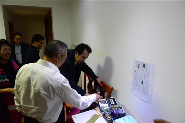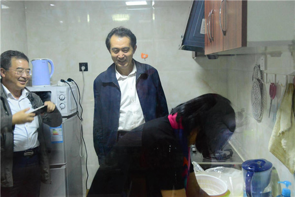 老师们的后勤保障做得怎么样?也是领导们特别关心的一个问题,看到每个宿舍的家电都配置齐全,日常用品都一应俱全,几位领导都露出开心的笑容。