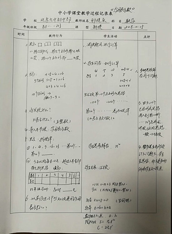 在学校教导处魏主任的安排下,第一节课听了邢晓东老师的《字母表示数》,这也是他准备明天参加全区课堂教学大赛的预演,小伙子年龄不大,但表现出的是沉着稳健,课程进行有章有法,突出表现的是打破教材设计,设计适合学生探究的教学过程:通过寻找规律习题的解答设计,体现由特殊到一般的解题思想,从1,2,3,4……到n,也体现从数到字母的过度。